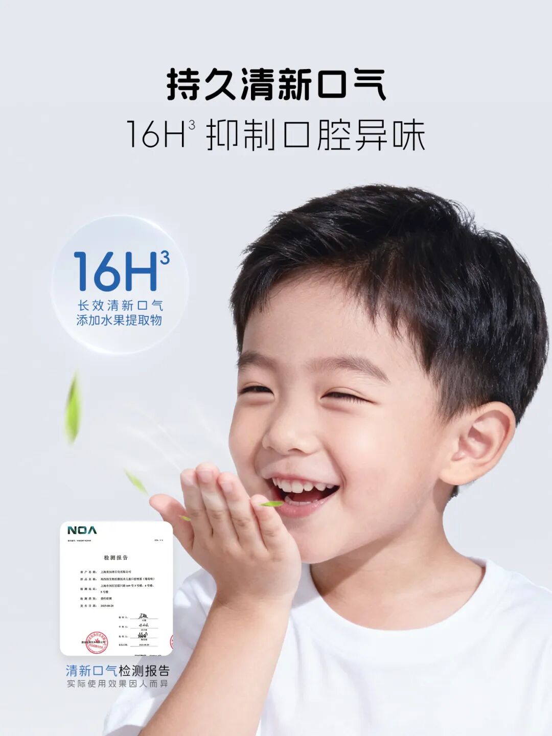 添加水果提取物,可16小时抑制口腔异味。
